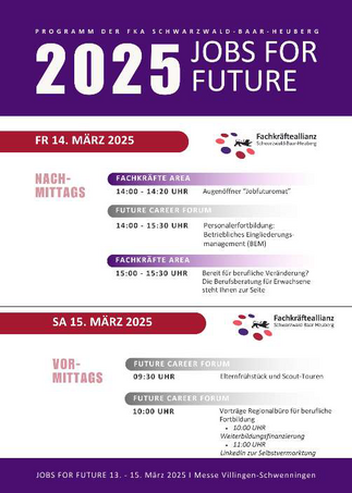 Region Schwarzwald-Baar-Heuberg, VillingenSchwenningen. Die Fachkräfteallianz SchwarzwaldBaar-Heuberg (FKA SBH) präsentiert auf der diesjährigen Jobs for Future Messe ein innovatives Konzept, das gezielt auf die Bedürfnisse der verschiedenen Zielgruppen – von Schüler:innen über Eltern bis hin zu HR-Verantwortlichen – ausgerichtet ist.